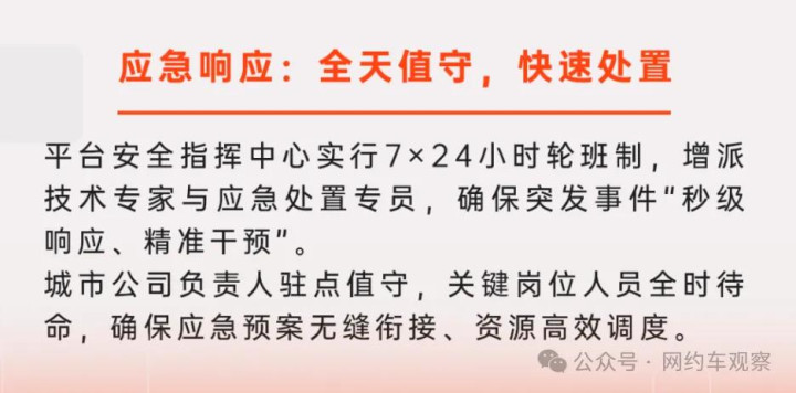 人身保障方面,T3出行上线司机医疗保险关爱计划,免费给符合条件的司机家庭提供保障期为一年的门急诊医疗、住院医疗及意外保险。同时,T3出行还搭建人防系统,安全员7×24小时轮岗,一旦车辆异常停留或触发语音警告,会立刻介入处理突发状况。